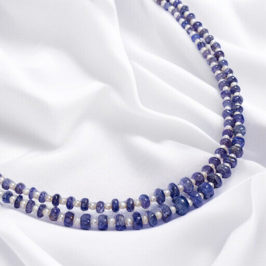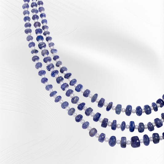 Blue Sapphire Rice Pearl Multilayer Necklace