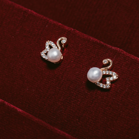 Swan Gold Pearl Earrings
